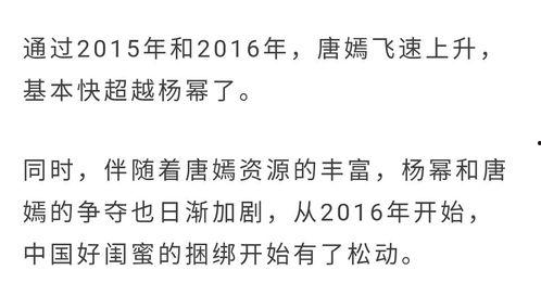 杨幂还爆料说,娱乐圈中存在很多潜规则。她透露,有些明星为了走红,不得不付出很多代价。比如,有些明星为了获得更好的资源,不得不在背后讨好一些有权势的人。这个爆料让很多网友震惊,纷纷表示:“娱乐圈的水真深啊!”